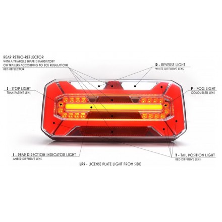 Lampa stop LED stg./dr. Tensiune:12V-24V Lampa 5F:pozitie,semnalizare dinamica,frana,mers inapoi,ceata Clasa IP:IP66/IP68 Fabricat in EU
