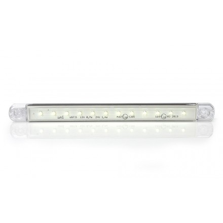 Lampa pozitie fata spate lateral cu diode LEDCuloare: ALB si ROSUTensiune alimentare: 12V-24VNr.functii:1Montare:dreaptaCablu:36cm LgY-S 0,75mm2Cod IP:IP 66/68Certificat ECE:E 20Fabricat in: EU